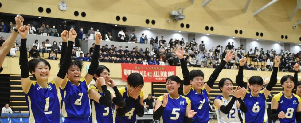 女子の明秀日立は、昨年優勝の日本ウェルネスを相手に激しいラリー戦を制した。終盤まで競り合う展開でも、3年のエース島田結花が冷静に強打を放ち、実力を見せつけた。