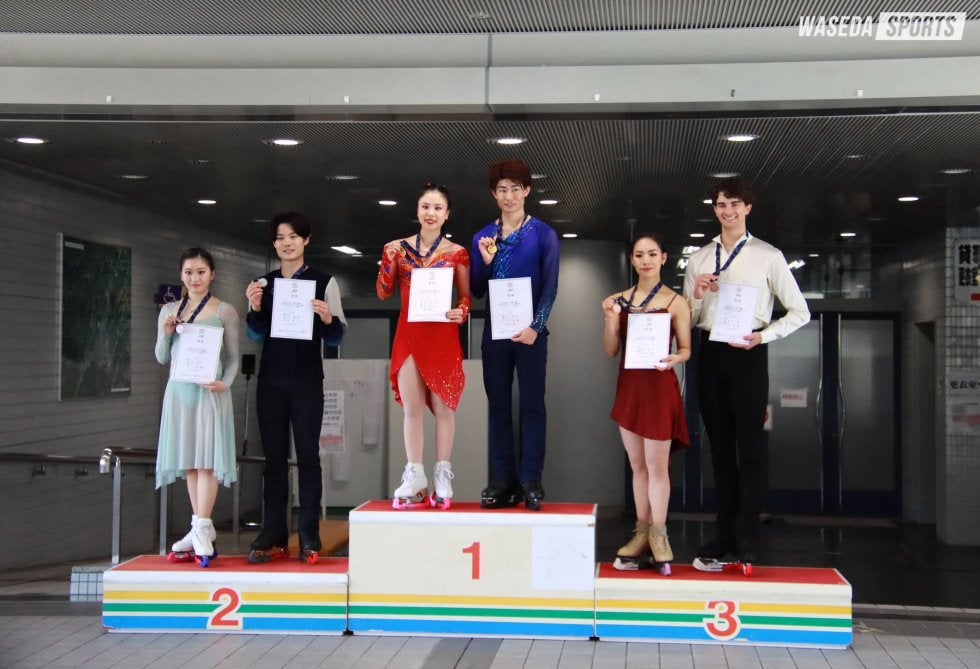 今年5月にアイスダンスカップル結成を発表した田中梓沙(オリエンタルバイオ)と早大の西山真瑚(オリエンタルバイオ/人通4=東京・目黒日大)の「あずしん組」が国内デビュー戦を迎えた。6組のアイスダンスカップルが集結し、それぞれの演技で会場を大いに盛り上げた今大会。上位勢が接戦を繰り広げる中、田中・西山組が銀メダルを獲得した。