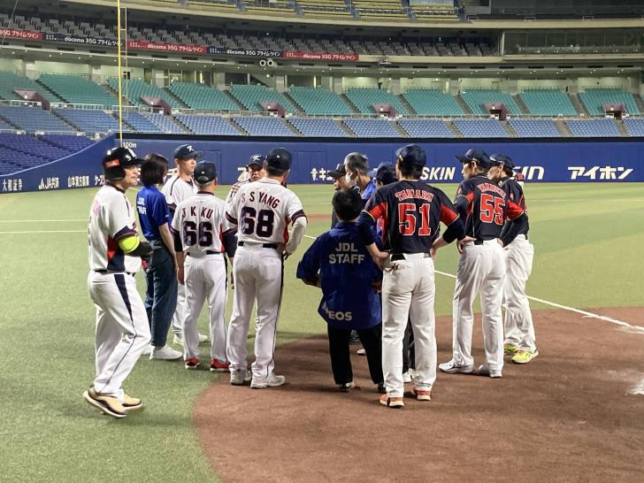 すると韓国側もここで抗議。両チームの監督やコーチ、審判が本塁付近に集まり試合が約20分中断した。