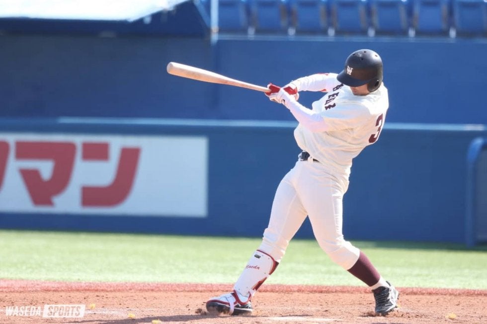 対する打線は4回、先頭の岡西佑弥(スポ1=智弁和歌山)が左中間へフェンス直撃の二塁打でチャンスメイク。相手の失策も絡み走者を進めると、椎名の内野ゴロの間に1点を返す。続く5回にも、寺尾拳聖(人1=長野・佐久長聖)が二塁打を放って再び先頭打者が出塁すると、打席には4番・前田健。フルカウントからの6球目を振り抜くと、これが2戦連続の適時打に。閉幕した秋季リーグ戦に出場できず、「その反骨心からずっと練習はしていた」と語った前田健は、来季に向けて猛アピールに成功した。