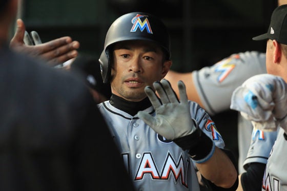 レンジャーズ・ダルビッシュ有投手との3年ぶりの対戦でタイムリー二塁打を放ち、9回には捕手のニコラスの“超遅球”を打って話題を呼んだマーリンズ・イチロー外野手。その勝負強い打撃に米メディアから称賛の声が寄せられている。