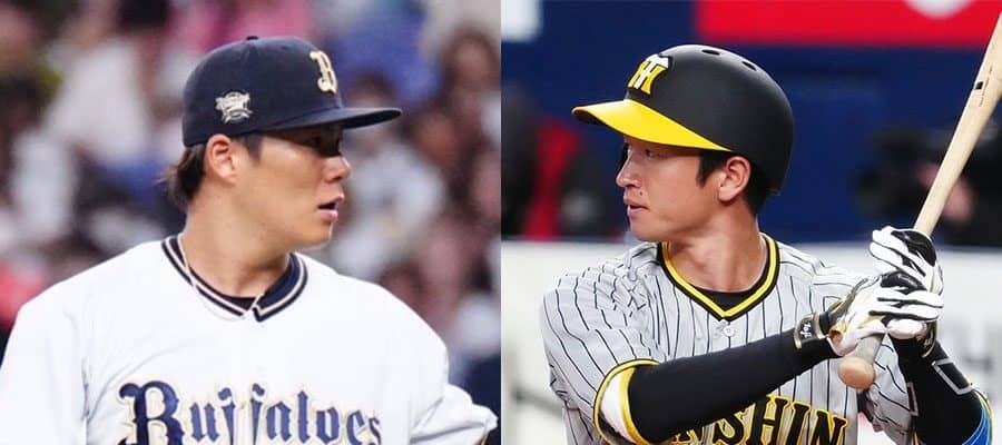 オリックス・山本由伸(左)と阪神・近本光司【写真:荒川祐史】