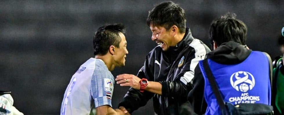 川崎フロンターレの鬼木達監督とパトゥム・ユナイテッドのチャナティップ 撮影:中地拓也
