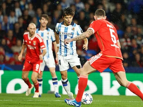 日本代表選手が所属するチームから追ってみたい。久保建英所属のレアル・ソシエダはベンフィカと対戦。3-1で勝利を収めベスト16入りを決めた。レアル・ソシエダがCLでベスト16入りしたのは2003-04シーズン以来。当時、21歳の大学生ながらチームの中心だったシャビ・アロンソ(現レバークーゼン監督)は翌シーズン、リバプールに引き抜かれていった。はたして久保の場合はどうなるか。