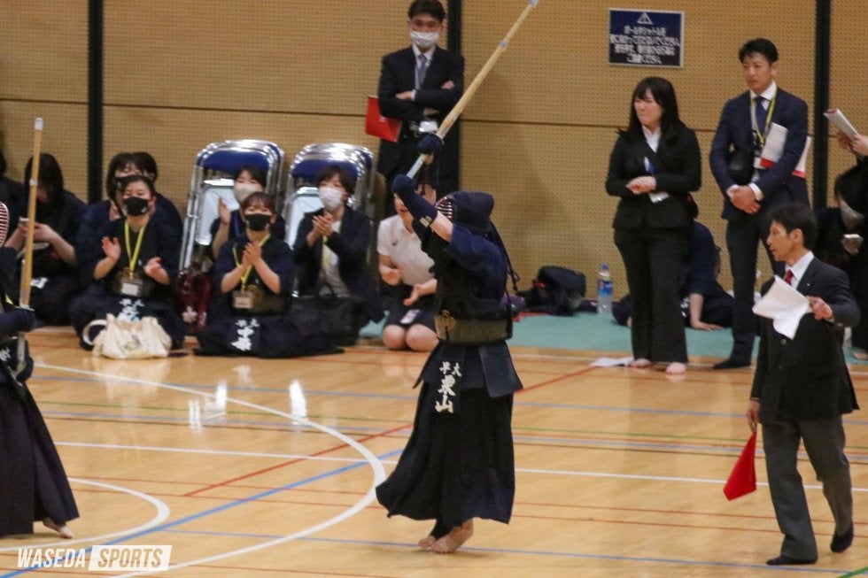 栗山 (法大戦で)負けて、私が大将戦で負けたんですけど、その前の4人の流れとしては100点に近かったです。あと自分がしっかりしたら全日は勝ち上がっていける力はあるんだなっていうことを再認識できました。あと、今までやってきた大学の団体戦の中で一番、自分たちに少しでも可能性を感じた大会でした。関東で勝つことが目標じゃないので、関東は負けたけど、それを踏み台にして全日ではしっかりやり返してやるっていう気持ちをもってできる、私にとってはすごい反省しないといけないのですが、チームにとっては悪い負けではなかったかなって思いました。