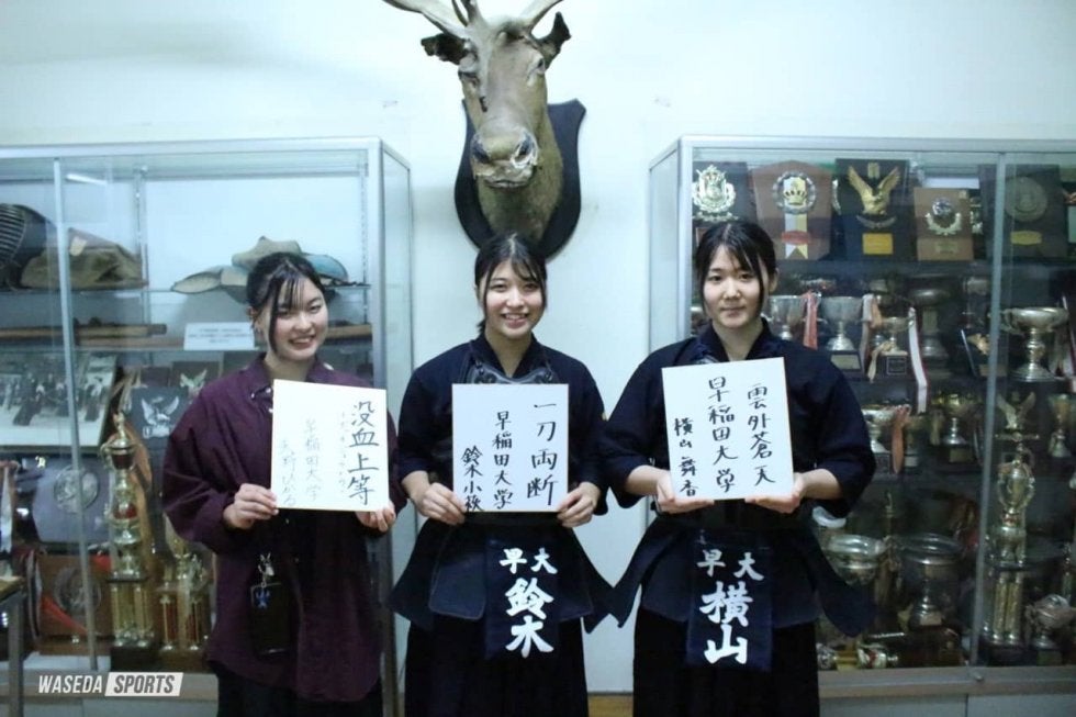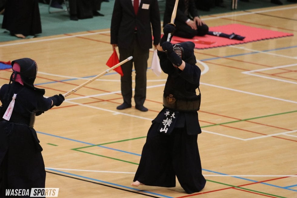 矢野 私は昨年の早慶戦でも戦った相手で、昨年も負けて今年も負けたんですけど。相手の印象としては私のことをめちゃくちゃ研究しているなという感じで。序盤は結構有利に進めていけたかなと思っているんですけど、やっぱり最後の詰めの甘さがでて打たれて。でも、次に生きる負けだったんじゃないかなと。落ち込んでもしょうがないんで、次は勝てるようにするしかないなと。横山主将のメンに早稲田全員感動して、師範とかもめちゃくちゃ感動されてて、私自身も執念の1本だったなという感じがするような最後は気持ちで勝った、気持ちが入った一1本だったので、後輩の立場からすると、そういう技を出せるように全日では頑張りたいなと思いました。
