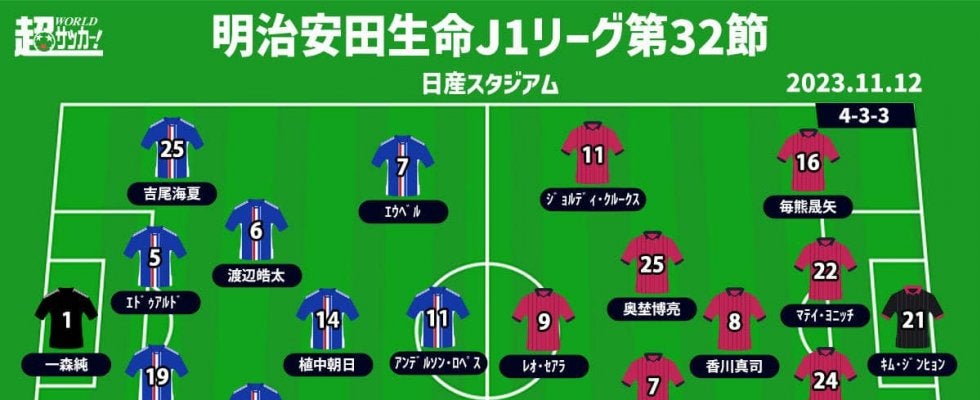 【明治安田生命J1リーグ第32節】 2023年11月12日(日) 14:00キックオフ 横浜F・マリノス(2位/60pt…