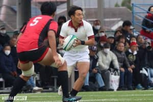 すぐに追いつきたい早大Bは、後半4分にハーフライン付近でのマイボールスクラムから、NO・8山本竜大(教2=東京・早実)が帝京大Bディフェンスを引きずりながらのビッグゲインを見せる。そのまま敵陣奥深くへ攻め込みフェーズを重ねると、帝京大Bのペナルティーを奪い、クイックスタートを切ったWTB福島が自らトライラインを割った。後半最初のトライを奪った早大Bが、このまま勢いに乗って逆転するかと思われたが、帝京大Bの3連続トライで点差を広げられる。しかし、ここで諦めなかった早大B。30分、帝京大Bボールのスクラムでペナルティーを奪うと、敵陣奥深くでのマイボールラインアウトから左に展開する。FB京山秀勇(人4=福岡・東筑)のビッグゲインでさらに左へフェーズを重ね、最後はSO黒川和音(人2=茨城・茗渓学園)が外にまわってインゴールへ飛び込んだ。この後、試合終了間際の41分にも敵陣左奥深くでのマイボールラインアウトからモールトライで得点。終盤の2連続トライで追い上げを見せた早大Bだったが、24ー43でノーサイドとなった。
