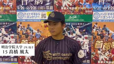 球場:サーティーフォー相模原球場第1試合 明治学院大学 7-6 帝京大学ヒーロー:明治学院大学2年 髙橋風太(投手)背番…