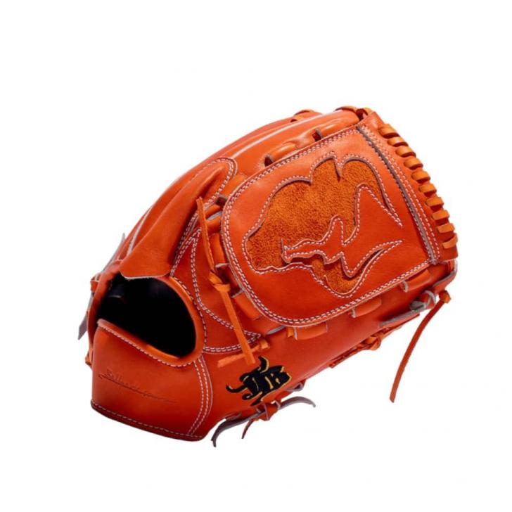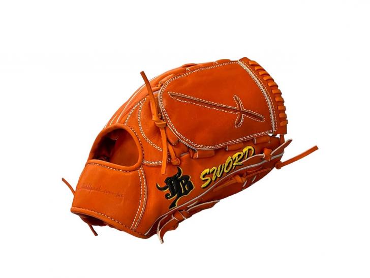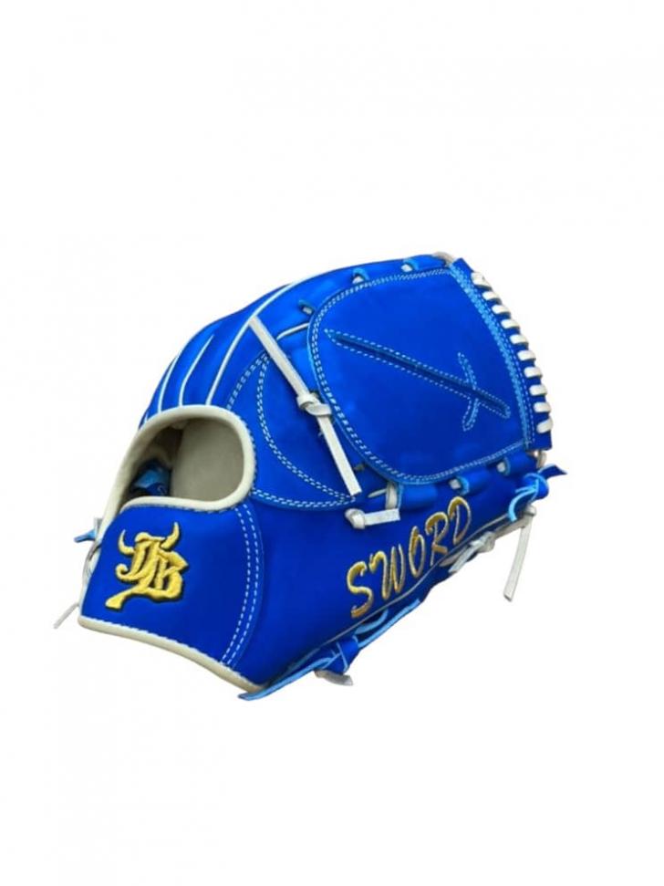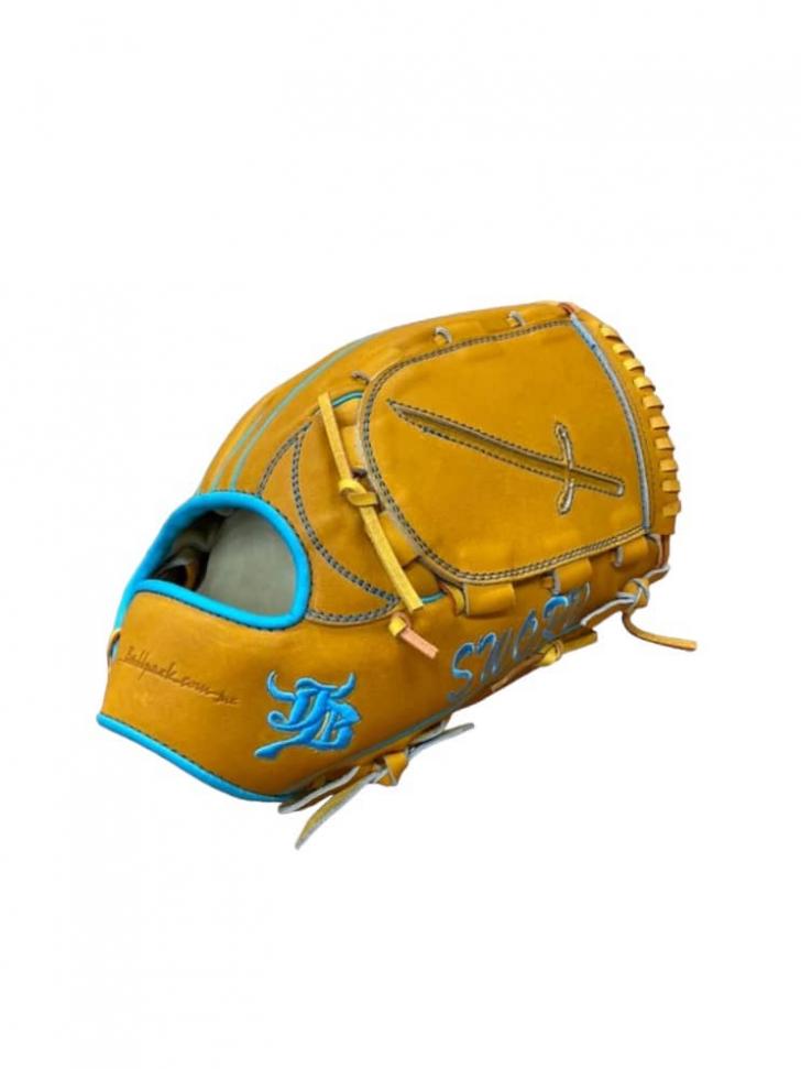 「以前購入したグラブは『JB-001Y』というオーソドックスな投手モデル(色はオレンジ)。型はすごく気に入っているが少し大きくしたいという要望がありました。ベースはそのままで大きさを11.5インチから12インチに。色も弊社オーダーシステムから選んでいたので、あとはウェブ部分へソードを入れました」