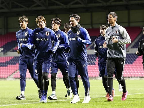 W杯予選ミャンマー戦に向けて合宿を行なう日本代表の選手たち photo by Kyodo News