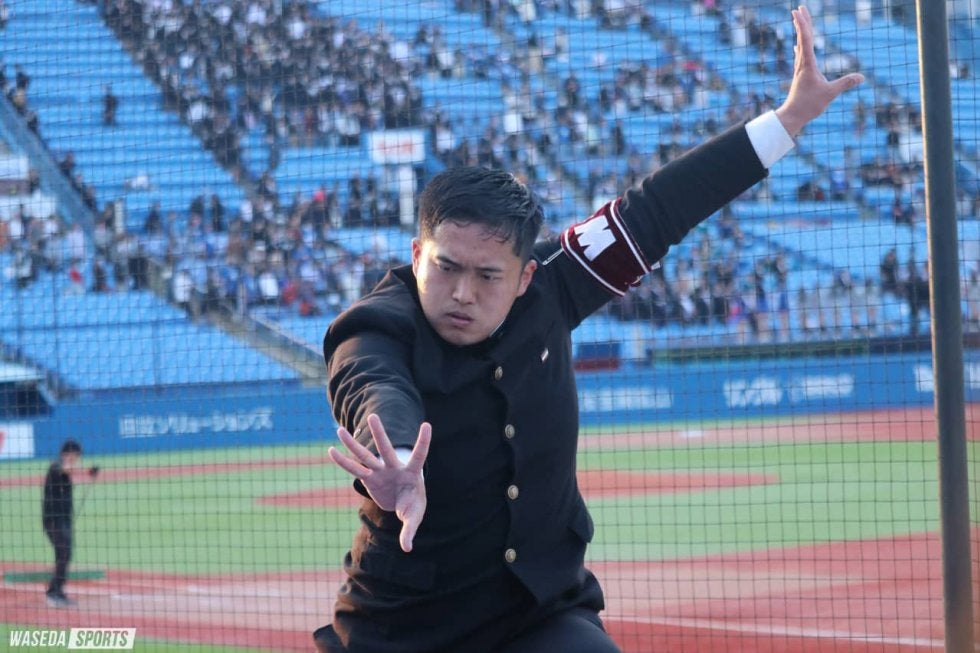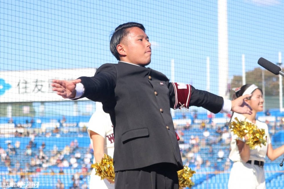 正直あれだけの観客の方々が来てくれるとは思っていませんでした。優勝決定戦とはいえ、秋の早慶戦らしく空席が目立つのではないかと思っていましたが、満員の応援席を見ることが出来て、この上なく幸せでした。同期や下級生が集客を非常に頑張ってくれたおかげで、神宮は満員になったのだと思います。自分1人では絶対に見ることが出来なかった光景だと思います。自分としては「満員御礼」「縁を大切に」という目標を持ってこの1年取り組んで来ましたが、ようやく自分の目標が叶いました。同期と下級生には感謝しかないです。