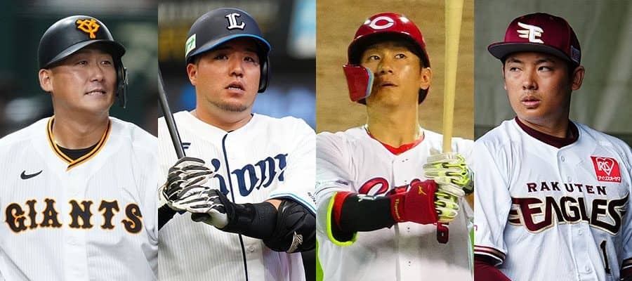 巨人・中田翔、西武・山川穂高、広島・西川龍馬、楽天・松井裕樹(左から)【写真:矢口亨、荒川祐史】
