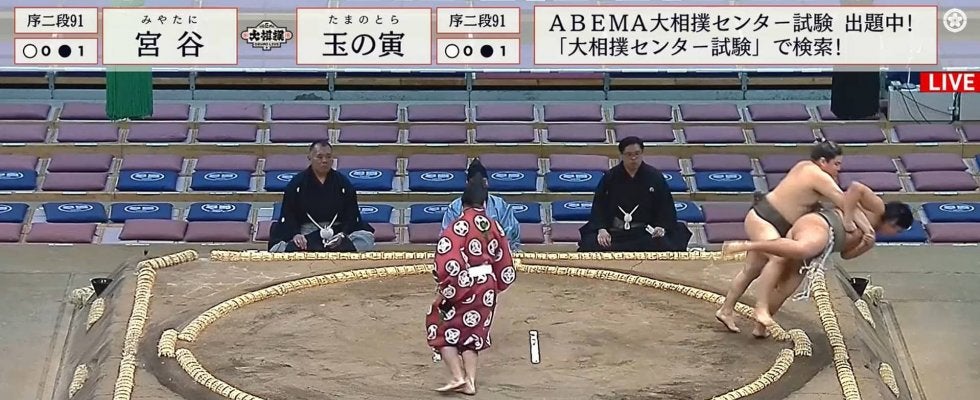「すごい音したぞ」土俵から“回避不能”の前向き落下 平然と戻ってくる力士のタフネスとバランス感覚 | ABEMA