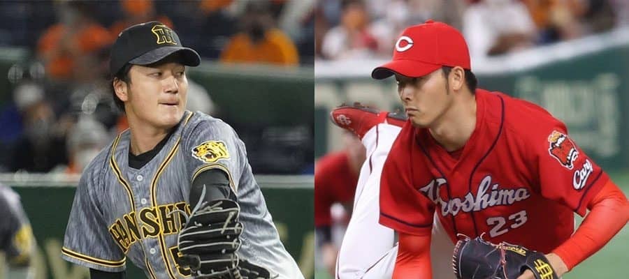 阪神を戦力外になった 小林慶祐(左)と広島を戦力外になった薮田和樹【写真:荒川祐史、加治屋友輝】