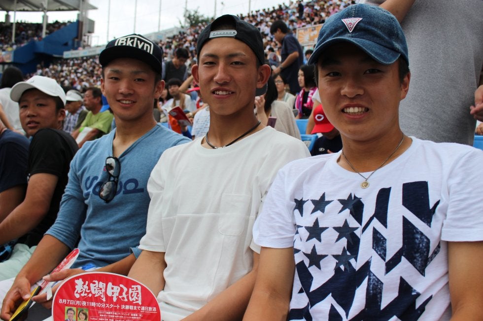 西東京大会決勝の応援に訪れた佐倉リトルシニアの同期。写真左から鯨井、金久保、東海大浦安・中上誉貴