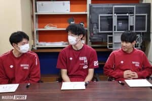 浅野 どちらかというと、勝つことが当たり前のようになってしまっていて、もっと出せることが出せないという歯痒い時期だったのかなと、客観的に見ていました。逆に凌吾や大貴さんが怪我などで途中で出られなくなって他のメンバーが入ったときに、ガンといつもの早稲田らしい、一層チーム力が上がる瞬間がすごく見られたので、良くも悪くも刺激的なリーグになったと思うし、ここから試合に向けて修正しながらになるんじゃないかなと思いました。