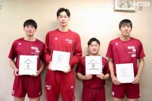 板垣 僕は、毎回ホームページに試合状況とか書くんですよ。春リーグとか東日本大学選手権を書いているときは、それこそ今年のチームスローガンの『大胆』をめっちゃ多用していたんですよ実は(笑)。でも秋はあまり多用できなくて、それこそ苦し紛れではないですけど、結局泰杜さん(水町、スポ4=熊本・鎮西)がギリギリで打ち切るとか、あまり全員が大胆にプレーして勝てたという試合が多くなかったのかなというのが、個人的に持っている秋リーグの印象です。それを踏まえて、全日本インカレでは全員がしっかり大胆さを発揮できるように、コンビの一つ一つの精度やパスの質を見つめ直す必要性があると感じました。