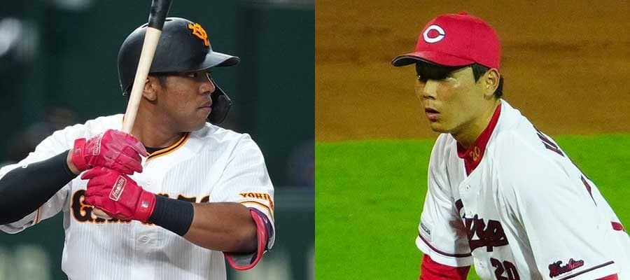 巨人・オコエ瑠偉(左)と広島・栗林良吏【写真:矢口亨、荒川祐史】