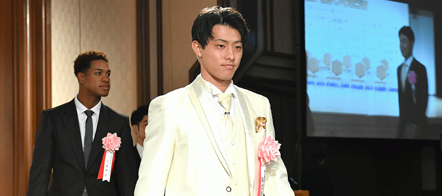 表彰式に出席した楽天・辰己涼介【写真:小林靖】