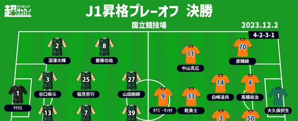 【2023 J1昇格プレーオフ決勝】 2023年12月2日(土) 14:05キックオフ 東京ヴェルディ(3位/75pt)…