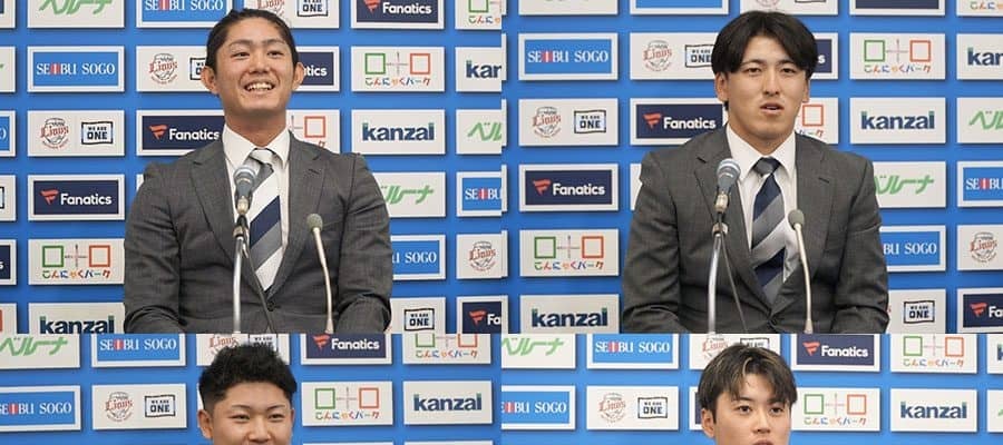 西武の今井達也投手、隅田知一郎投手、佐藤隼輔投手、古賀悠斗捕手が2日に契約更改に臨み、今井は3500万円増の8000万円、隅田は倍増の4000万円、佐藤隼は1400万円増の3000万円、古賀は1300万円増の2800万円(金額は全て推定)でサイン。「カーネクスト アジアプロ野球チャンピオンシップ 2023」に出場した“獅子の侍4銃士”は、揃って倍増規模の来季年俸を勝ち取った。