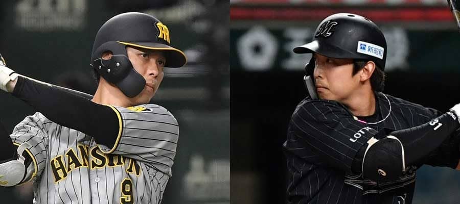 阪神・高山俊(左)とロッテ・菅野剛士【写真:小林靖】