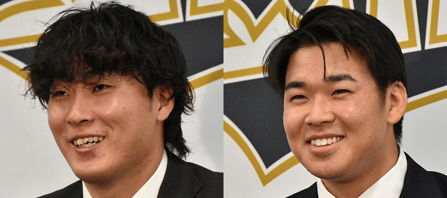 契約更改交渉に臨んだオリックス・東晃平(左)と山下舜平大【写真:真柴健】