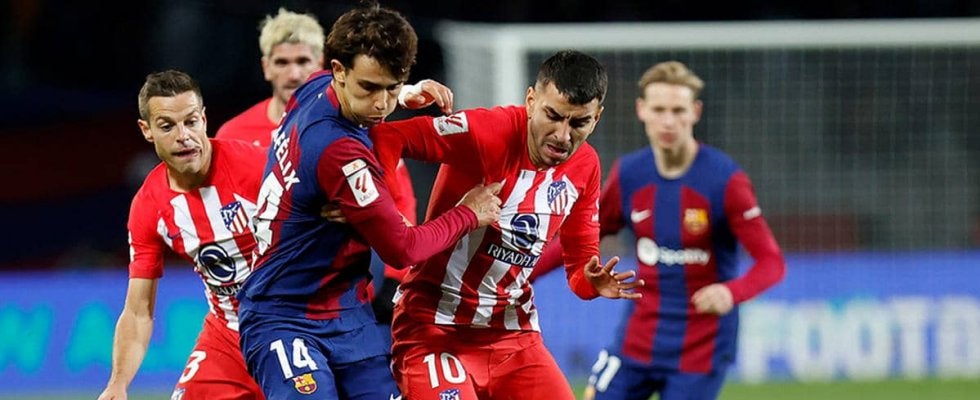 実際、後でGKオブラクも「La primera parte la hemos tirado/ラ・プリメーラ・パルテ・ラ・エモス・ティラード(前半をウチは捨ててしまった)。何でかはわからないけど、元々、最初から勝ちに行く予定だったのに、誰もボールを受けたがらないし、プレーもしたがらなかった」と言っていたように、3度とパスが繋がらず、今季初めて見る酷い状態だったんですが、更なる最悪が訪れたのは29分。ペドリのスルーパスを受けたジョアン・フェリックスをモリーナがあっさり逃し、ゴール前左から、オブラクの頭の上を越えるvaselina(バセリーナ/ループシュート)で決められて、広告ボードの上で大々的に祝われてしまうって、そんな当人の台本通りの展開があっていいんでしょうか。