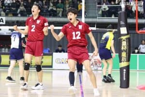 | アウトサイドヒッター 水町泰杜(スポ4=熊本・鎮西) アウトサイドヒッター 山田大貴(スポ4=静岡・清水桜が丘) ミドルブロッカー 伊藤吏玖(スポ4=東京・駿台学園) ミドルブロッカー 麻野堅斗(スポ1=京都・東山) オポジット 畑虎太郎(スポ2=福井工大福井) セッター 浅野翼(スポ3=宮城・東北) リベロ 荒尾怜音(スポ4=熊本・鎮西) リベロ 布台駿(社4=東京・早実) | ||||