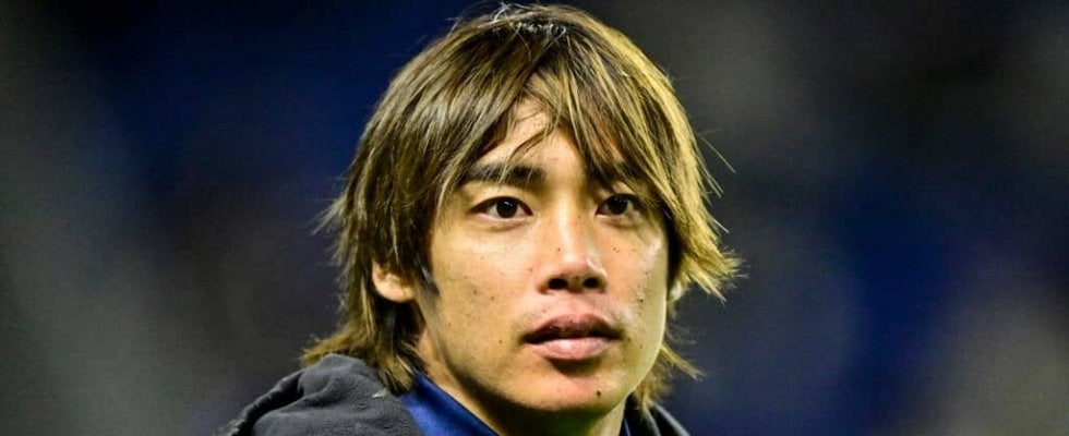 「は?かわいすぎるやろ」「似合いすぎ」伊東純也、スタッド・ランスの「黄金期ユニフォーム風Tシャツ」の着用姿が話題に! 新発売となった復刻ウェアのモデルに抜擢