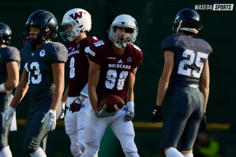 関東大学秋季リーグ戦を4位で終えた早大BIG BEARS。ホームグラウンドである東伏見で関西の強豪・京大GANGSTERSと交流戦を行った。前半は早大が3本のTDを奪うなど大量リードに成功したが、第4クオーター(Q)に京大に3点差まで追い上げられる。しかし、最後は京大の猛追から逃げ切り、31-28で接戦を制した。