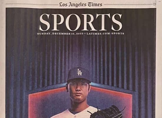 大谷翔平のドジャース入りを大きく報じるLAタイムズ【写真:小谷真弥】