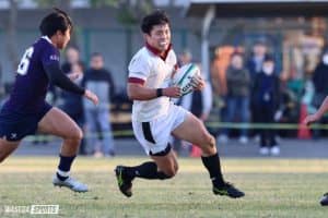 スピードある攻撃で、相手ディフェンスを翻弄するWTB磯崎