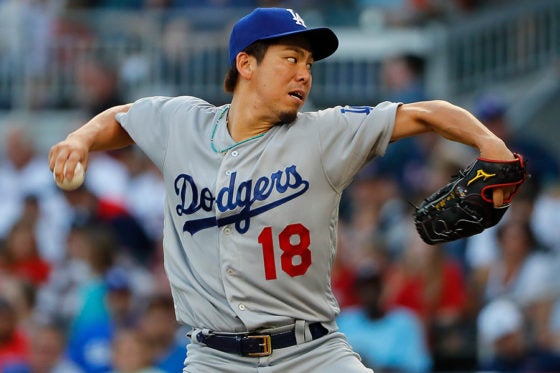 1日(日本時間2日)の敵地ブレーブス戦で今季10勝目を挙げたドジャースの前田健太投手。7回94球で2安打1四球6奪三振無…