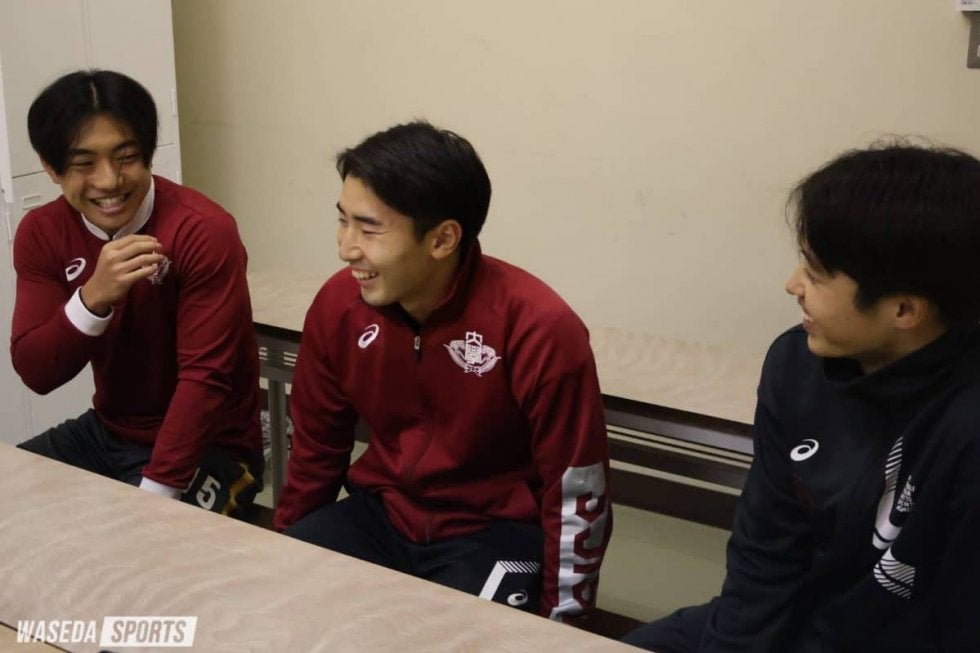 第1回にはMFの3人、MF川辺球尊(スポ2=大宮アルディージャU18)、MF谷村峻(スポ2=FC東京U18)、MF森田大智(スポ2=熊本・大津)が登場。学年リーダーの川辺、ボランチを担う谷村、トップ下として活躍する森田。来たる全国大会に向け、それぞれが秘めている思いに迫った。