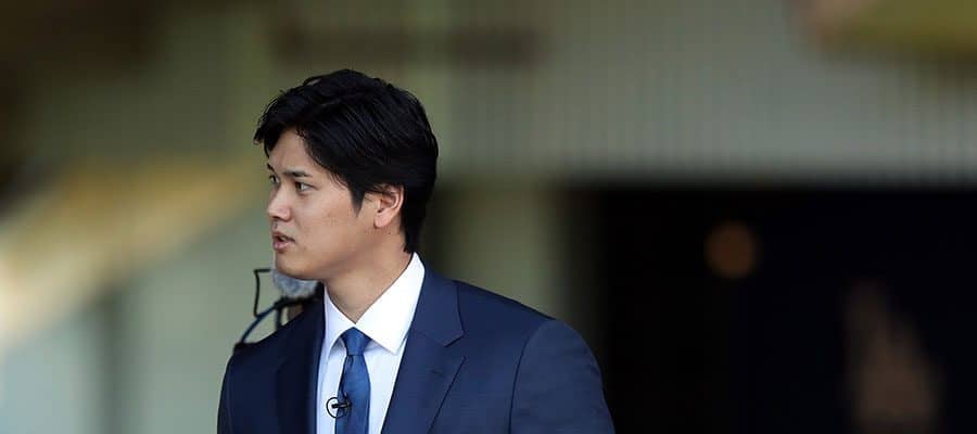 ドジャース入団会見に臨んだ大谷翔平【写真:Getty Images】