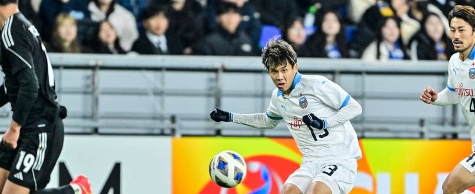 ACL蔚山戦でプレーする川崎フロンターレの山根視来 撮影:中地拓也