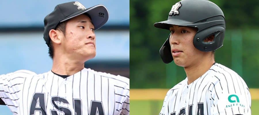 亜大・草加勝(左)と天井一輝【写真:加治屋友輝】