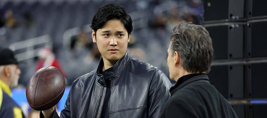 NFLの試合に登場したドジャース・大谷翔平(左)【写真:Getty Images】