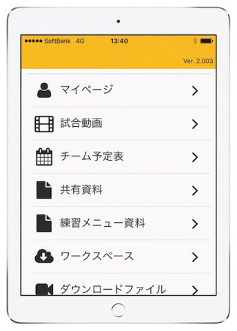 実際に試合の分析・対策、練習にも活用されており、選手・ポジション・コーチ専用のアプリを独自開発。アプリ画面を紹介しているように、「試合動画」「チーム予定表」「共有資料」「練習メニュー資料」といった項目は、サーバー上に自動的にアップデートされ、選手はデータにアクセスするだけで、常に最新情報を得ることができる。多くの選手がロッカールームや移動中のバスや自宅などでチェックしているらしい。