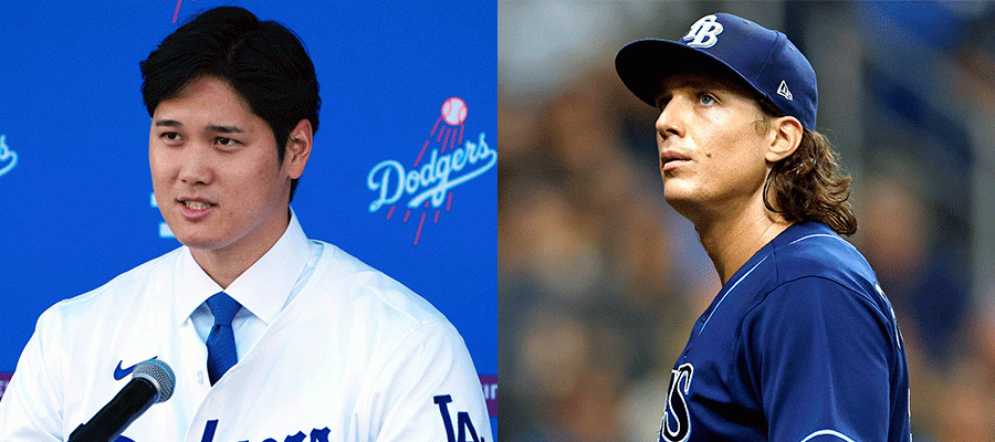 ドジャース・大谷翔平とタイラー・グラスノー(写真はレイズ在籍時)【写真:ロイター、Getty Images】