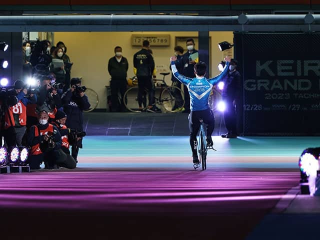 すごく強いメンバーの中で、一番いい脚力の出し方で優勝できて嬉しいです。最終4コーナーをまわって、ゴール線が近づいてきた時、誰も近くにいないのが分かったので良かったです。スタートで、枠番通り出たら、僕が前で吉田有希さんが抑えにくる展開になると思っていたのですが、その展開ではなかったので、想定外の動きになりました。僕が仕掛け始めて、少ししてから犬伏(湧也)さんが出てきたので、犬伏さんの動きに乗る選択肢はありませんでした。犬伏さんの前に出るのが、自分の仕事だと思って、前まで出ました。最終1コーナーで犬伏さんと目が合った時に、出切れないかもしれないと思ったのですが、力と力をぶつけ合うしかないなと思って戦いにいきました。