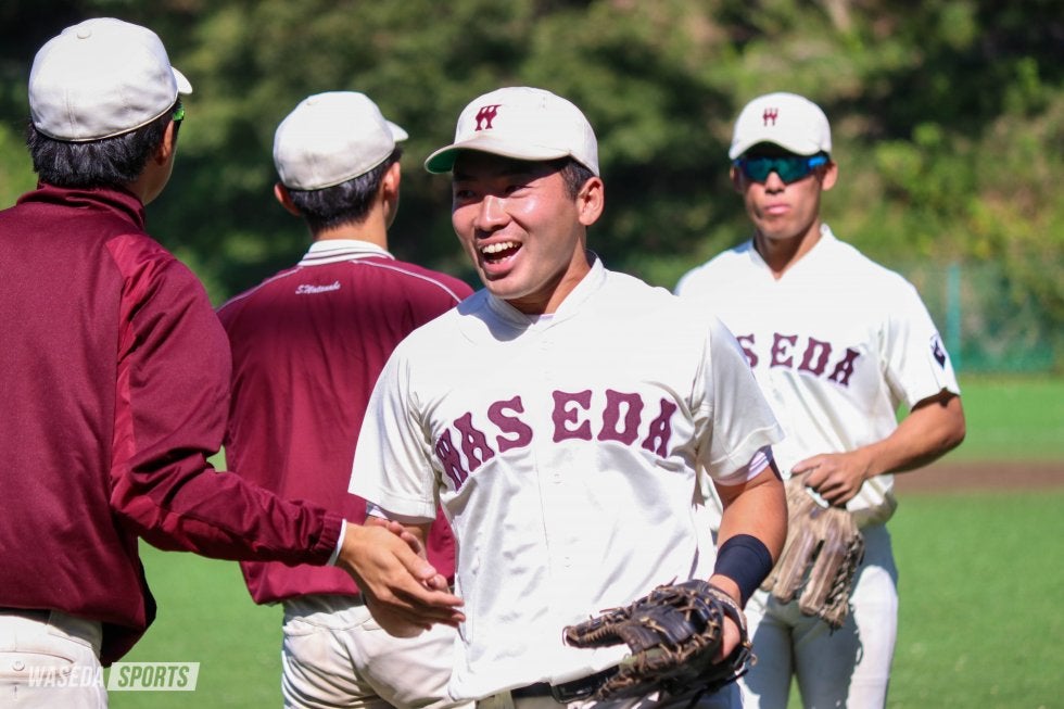 今シーズン出ている選手の多くが3年生以下ということで、来年もそういった選手が主体となって出てくると思いますが、早稲田は他大学と異なりスポーツ推薦を取っていないので、そういったスター選手がいない中でお互いに意見しあって互いを高め合ってチームワークで勝っていくのが早稲田の野球だと思うので、来年はチームワークで勝っていきたいと思います。
