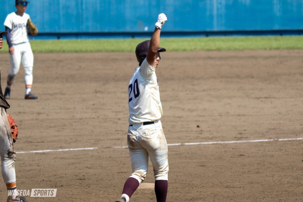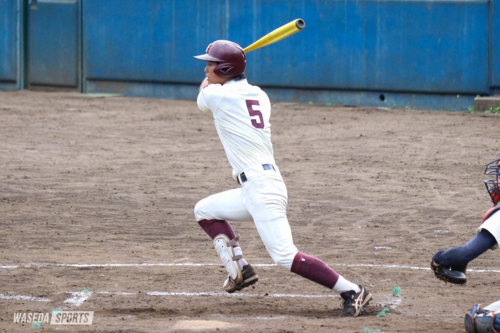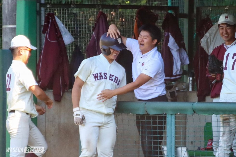 どの試合も終盤までどうなるか分からず、切羽詰まった状態がずっと続いていた中で、特に今日(立大3回戦)はずっとビハインドで迎えていて、そこで久保嶋(真也、社3=神奈川・桐蔭学園)と笠井(駿汰、政経3=埼玉・早大本庄)が一本出してくれて、チーム全員で勝った試合だったと思います。
