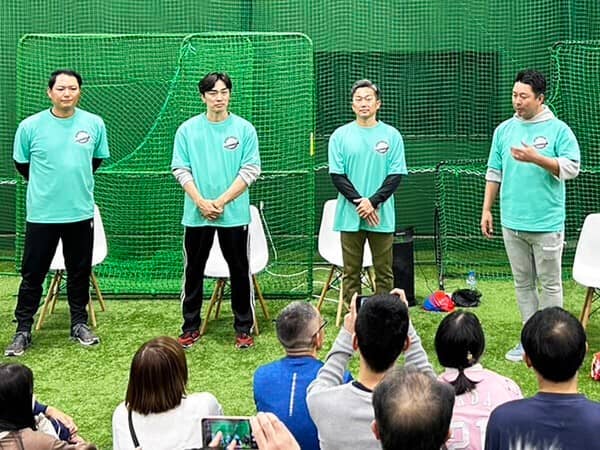 イベントに参加した(写真左から)攝津正、和田毅、石川雅規、館山昌平 photo by Ujihara Hideaki