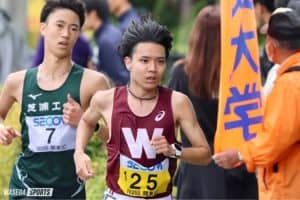 昨年の展開としては、国学院大の佐藤選手と同時にタスキをもらって、向こうはつっこんだのに対してこちらは抑えて守りに入ってしまった部分がありました。それがやはり国学院大が4位まで浮上できて早稲田大学が6位に停滞してしまった決め手になってしまったと思っています。昨年度と比べて、攻めるレース展開も視野に入れた上で、レースプランの引き出しを増やしていきたいと思っています。