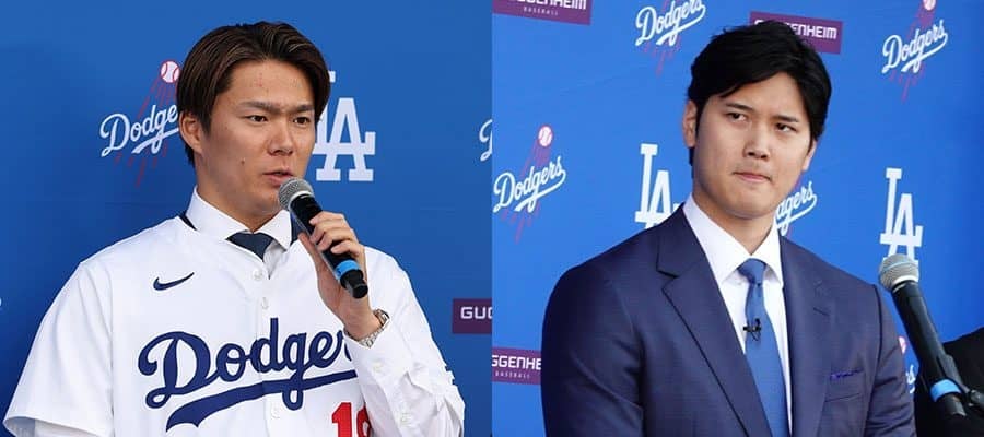 ドジャース・山本由伸(左)と大谷翔平【写真:Getty Images、小谷真弥】