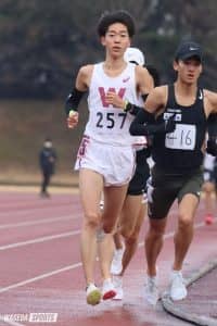 ビルドアップしていく中で、キツさをじわじわ感じました。ただ、人生でスパイクを履いて全力で走ることはこれが最後になるんだと自分に言いきかせて先頭に食らいつこうと思いました。城西大の選手には引き離されましたが、自分の残りの力を考えて、いい位置でスパートを決められたと思います。