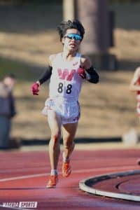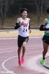 5000メートルには早大から7人が出場。スタートから先頭集団でレースを展開したのは、安江悠登(法1=埼玉・西部文理)と増子陽季(人1=栃木・大田原)。他大の選手に必死に食らいつくも、2000メートル過ぎに集団からこぼれ、第2集団でレースを進めるかたちに。4000メートルを過ぎると、藤本進次郎(教2=大阪・清風)が徐々にスピードをあげ、先頭集団を猛追。早大勢トップとなる5位でフィニッシュした。中盤から苦しい表情をみせた安江も自己記録を更新する走りで今年のレースを締めくくった。